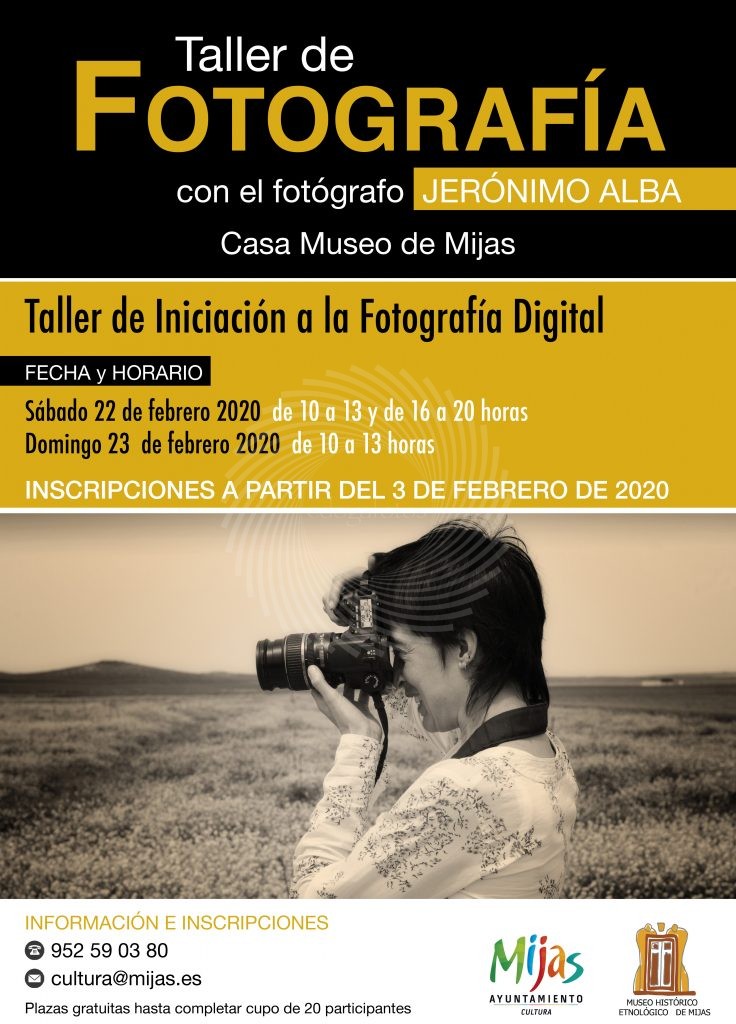 TALLER DE INICIACIÓN A LA FOTOGRAFÍA DIGITAL CON JERÓNIMO ALBA. En la Casa Museo de Mijas Pueblo (Plaza de La Libertad, 2) – Sábado 22 de febrero de 2020 de 10:00 a 13:00 y de 16:00 a 20:00 horas. – Domingo 23 de febrero de 2020 de 10:00 a 13:00 horas. Inscripciones a […]